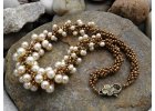 Náhrdelník z bílých perel a zlatých korálků / Necklace made from white pearls and golden beads